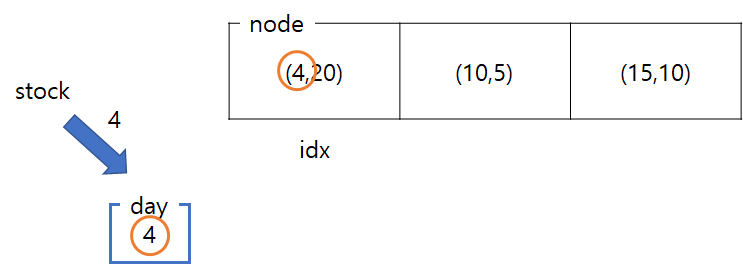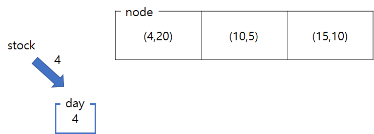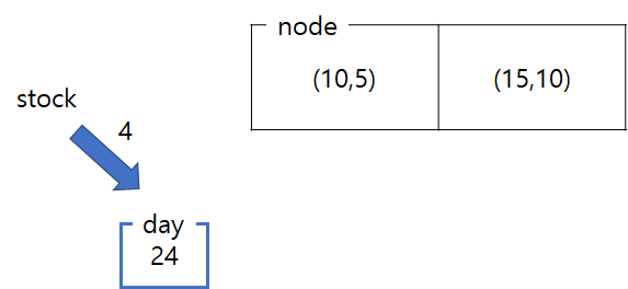 ์ด์จ๋ ๋ฌธ์ ํ์ด๋ฅผ ํด๋ณด๋ฉด, ์ฐ์ ์ฒ์ ์ฃผ์ด์ง stock๋ฅผ day์ ์ ์ฅํ๋ค. node์๋ dates ์ค๋ฆ์ฐจ์์ผ๋ก (dates, supplies)๊ฐ ์ ์ฅ๋์ด์๋ค.