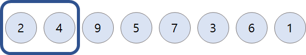 ๋ฌด์์๋ก ์ ๋ ฌ๋ ๋ฐ์ดํฐ ์ฒ์๋ถํฐ ๋ ์์์ฉ ์ง์ ์ง์ด์ ๋์๋ฅผ ๋น๊ตํ๋ค.