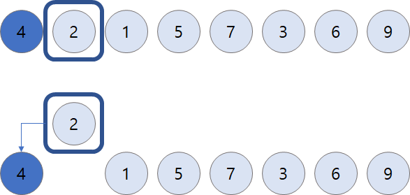 ์์ ๋ฐฐ์น๋ ์๊ฐ ๋ค์ ์๋ณด๋ค ํฌ๋ฉด ์๋ฆฌ๋ฅผ ๋ฐ๊พผ๋ค. ํฐ ์๊ฐ ๋ค๋ก ๊ฐ๊ฒ ๋ง๋๋ ๊ฒ์ด๋ค.