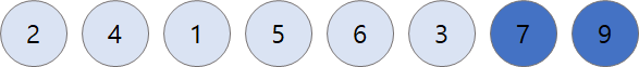 ๋ฌด์์๋ก ์ ๋ ฌ๋ ๋ฐ์ดํฐ์ ์ฒ์๋ถํฐ ๋๊น์ง ํ์ํ ํ, ๊ฐ์ฅ ํฐ ์๋ฅผ ๋ฆฌ์คํธ์ ๋ง์ง๋ง ์์์ ๊ตํํ๋ค.