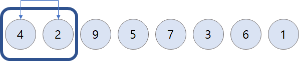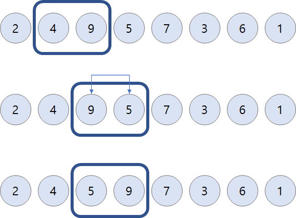 arr[i]์ arr[i+1]์ ๋น๊ตํ๋ค. arr[i]๊ฐ ๋ ํฌ๋ฉด ๋ ์๋ฅผ ๊ตํํ๋ค.