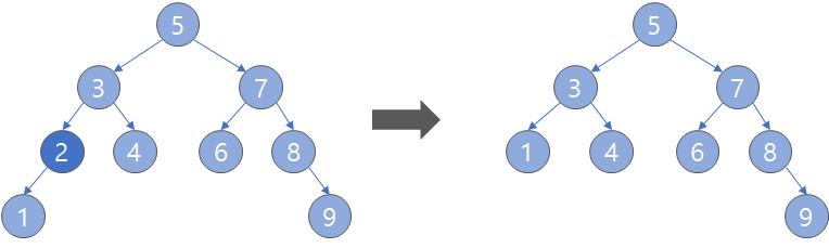 - ์ญ์ ํ๋ ค๋ ๋ ธ๋๊ฐ ํ๋์ ์๋ธ ํธ๋ฆฌ๋ฅผ ๊ฐ์ง ๊ฒฝ์ฐ