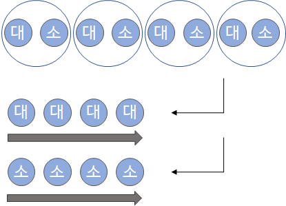 ๊ธฐ๋ณธ ๋น๊ต๋ก ์ค๊ฐ ๊ฐ์ ์ฐพ์ผ๋ฉฐ, ์ด๋ฅผ median(M)์ด๋ผ๊ณ ๋ถ๋ฅด๊ณ ๊ฐ์ด๋ฐ์ ๋ฐฐ์นํ๋ค. ์์๋ M๋ณด๋ค ํฐ ๊ฐ, ์๋์๋ M๋ณด๋ค ์์ ๊ฐ์ 2๊ฐ์ฉ ๋ฐฐ์นํ๋ค. ๋ชจ๋ set์ ๋ํด ์์ ๊ณผ์ ์ ๋ง์น๋ฉด ๋ค์๊ณผ ๊ฐ์ ๋ชจ์์ด ๋๋ค.