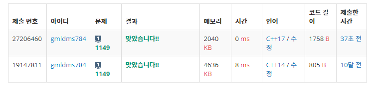 | [c++] BOJ 12865 :: ํ๋ฒํ ๋ฐฐ๋ญ (0) | 2021.03.12 |