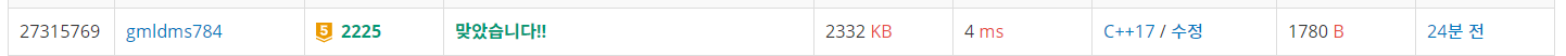 | [c++] BOJ 1753 :: ์ต๋จ๊ฒฝ๋ก (0) | 2021.04.06 |