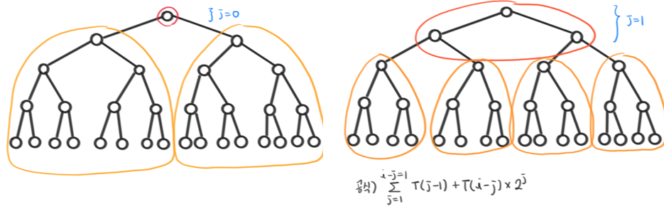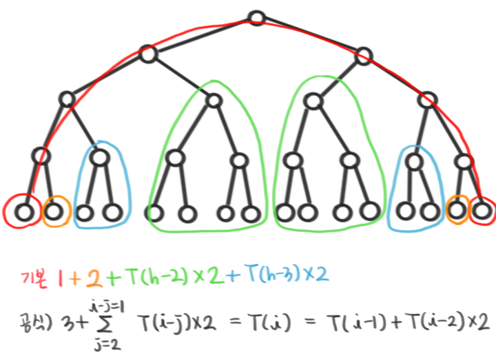 νμ§λ§ hκ° λμκ°μ λ°λΌμ μμ μ΄μ§ νΈλ¦¬μ΄λ―λ‘ λκ°μ κ·μΉμ΄ λ°λ³΅λκ³ , μ΄λ₯Ό μ νμμΌλ‘ λνλΌ μ μλλ° T(i) = T(i-1) + T(i-2)*2μ΄λ€.