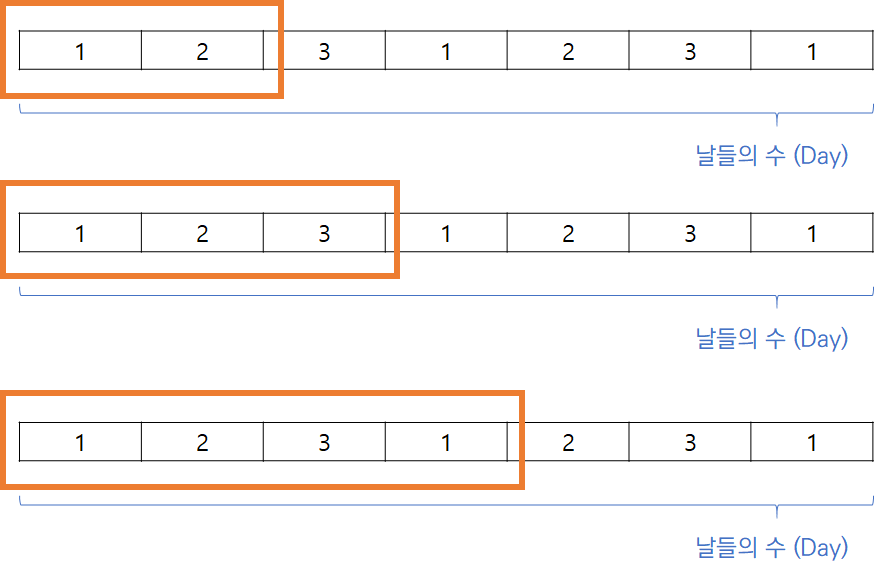 ์ฒ์์๋ ๋จ์ํ ๋ชจ๋ ๊ฒฝ์ฐ์ ์๋ฅผ ๊ณ์ฐํด๋ณด๋ ๋์ ํ๋ก๊ทธ๋๋ฐ ๋ฐฉ์์ ์ฌ์ฉํด๋ณผ๊น ์๊ฐํด๋ดค๋ค. (๋จ์, ๋ฌด์ํ๊ฒ ํ ์ ์์๊น?) ํ์ง๋ง, test case ์๋ 100๊ฐ์ผ ๋ฟ๋๋ฌ ๋์ฌํ ์ ์๋ ๋ ์ ์๊ฐ ์ต๋ 1000์ผ์ด๊ธฐ ๋๋ฌธ์ ํ๋ค๊ฒ ๋ค๊ณ ์์ํ๋ค. ์๋์ ์ฝ๋๋ ์์ ๊ทธ๋ฆผ์ฒ๋ผ sliding window ๋ฐฉ์์ผ๋ก ์ฎ๊ฒจ๊ฐ๋ฉฐ ๋ชจ๋ ํ๊ท ์ ๊ณ์ฐํ๋ ์ฝ๋์ด๋ค.