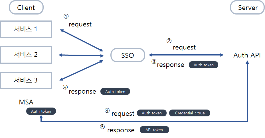 MSA는 서비스가 각각 나뉘어져있기 때문에 SSO(Single Sign On)라는 인증 layer를 추가적으로 둬야 한다.