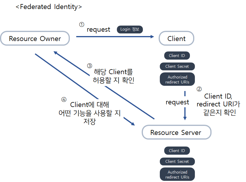 이렇게 연합해서 인증체계를 제공하는 것을 federated Identity라고 부릅니다.
