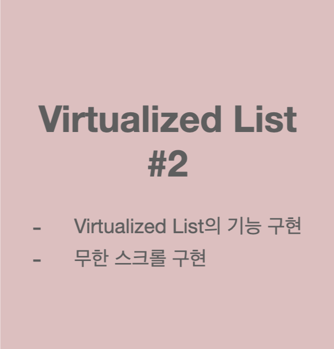 | [Virtualized List] #1. ๊ธฐ๋ณธ (Virtualized List์ ๊ตฌ์ฑ) (2) | 2022.12.02 |