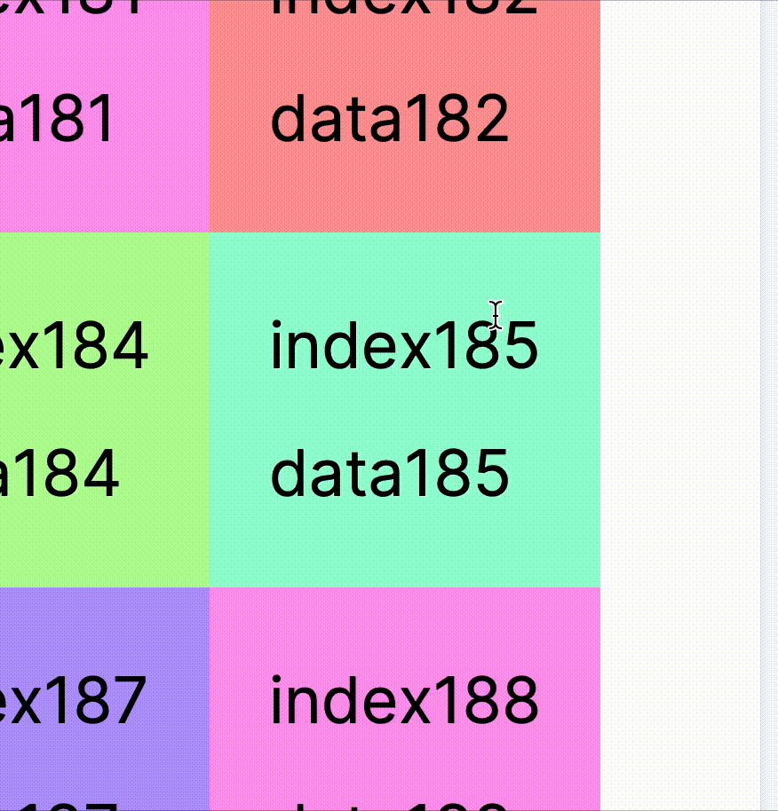 ์คํฌ๋กค ์์น ์ค๊ฐ์ผ๋ก ๋์์์ ์ญ๋ฐฉํฅ์ผ๋ก ์คํฌ๋กค์ ์ฌ๋ผ๊ฐ ๋, ์์ ๊ฐ์ด ์ด๋ฏธ ๋์ด๊ฐ ์กํ์์ด padding์ ์ค์ด๊ณ ์์ดํ ์ ๋์ด๋ฅผ ๋์ด๋ ์์ผ๋ก ๊ตฌํํ ์๋ ์์ง๋ง, virtuoso์์์ prepending ์์ ์ ๊ฐ์ด ์๋๋ก ์คํฌ๋กค์ ๋ด๋ฆด ๋์ ๋ง์ฐฌ๊ฐ์ง๋ก ์๋ก ์ฌ๋ฆด ๋๋ ํ row์ฉ ๋ฐ์์ค๋๋ก ํ๋ ๋ฐฉ๋ฒ์ด ์์ต๋๋ค. prepending์ผ๋ก ๊ตฌํํ ๊ฒฝ์ฐ ์์๊ณผ ๊ฐ์ด ์๋ก๊ณ ์นจ ์ ์คํฌ๋กค ๋ฐ์ ํฌ๊ธฐ๊ฐ ์ปค์ก๋ค๊ฐ ์๋ก ์คํฌ๋กค ํ ์๋ก ์์์ง๋ ๊ฑธ ๋ณผ ์ ์์ต๋๋ค.
