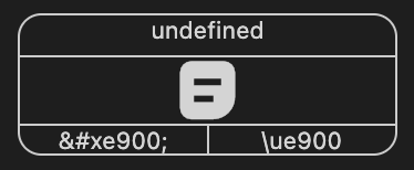 unicode  ๋ U+E900๊ณผ ๊ฐ์ผ๋ฉฐ ์ด์ ํด๋นํ๋ Character๋ ๎ค ์ด๊ณ ์ค์ ํฐํธ ํ์ผ์์ ์์ด์ฝ์ ์๋์ ๊ฐ์ ์ด๋ฏธ์ง๋ฅผ ๋งค์นญํด๋์๋ค.