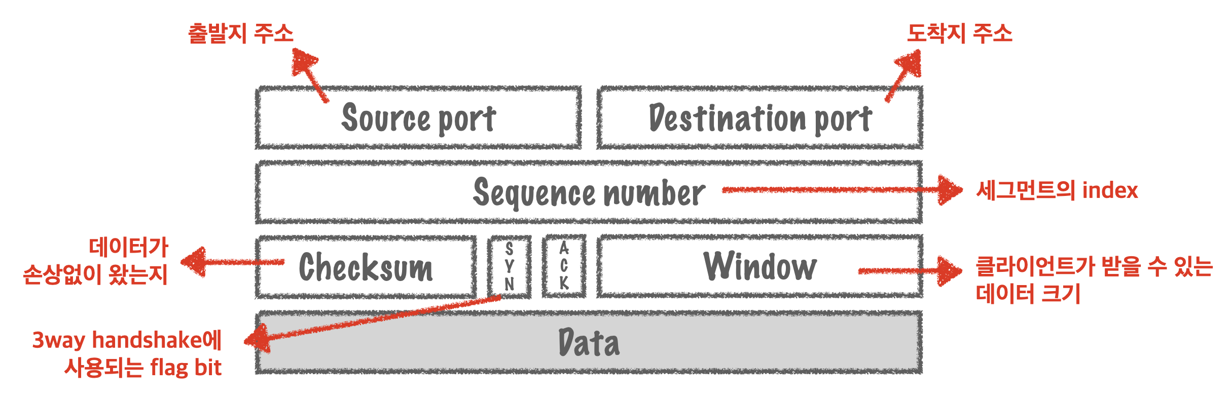 TCP ์๋ ์ด๋ฐ ํค๋๋ค์ ๋ถ์ฌ์ ์ธ๊ทธ๋จผํธ๋ฅผ ๋ง๋ญ๋๋ค. ์ฃผ์ํ ์ ๋ณด๋ค๋ง ํ์ํด๋ณด์๋๋ฐ์.