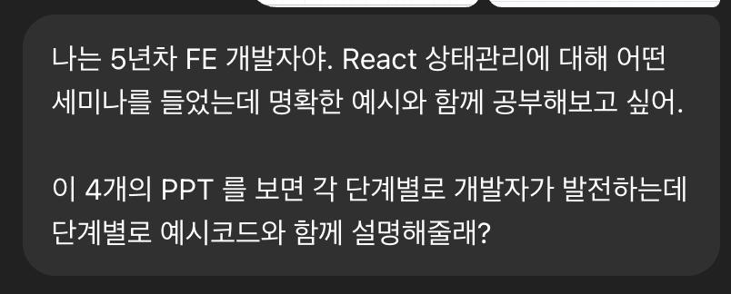 - ์ด๋ค ์ํ ๊ด๋ฆฌ ๋๊ตฌ๋ฅผ ์ธ๋? (useState, Context, ์ธ๋ถ ๋ผ์ด๋ธ๋ฌ๋ฆฌ ๋ฑ ์ค ์ ํ)
