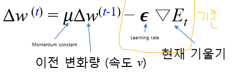 ๊ฐ์๋ ๊ฐ๋ ์ ์ ์ฉํด์ ์ด์ weight์ ๋ณํ๋ฅผ ์ด๋์ ๋ ์ ์งํจ