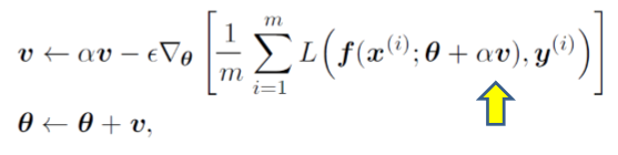 ๊ธฐ์กด Momentum ๋ฐฉ๋ฒ๊ณผ์ ์ฐจ์ด์ ์ ๊ธฐ์ธ๊ธฐ๋ฅผ ๋ฏธ๋ฆฌ ์ ๋ฐ์ดํธ ํ๋ค๋ ๊ฒ์ด๋ค.
