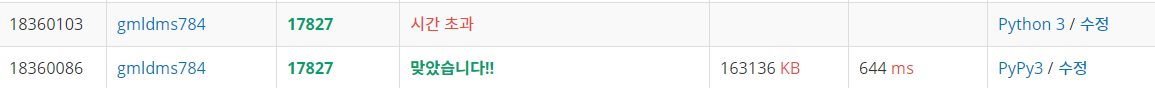 ์ฒ์์ ํจ์๋ก ๋ง๋ค์๋ค๊ฐ ์คํ ๋ฉ๋ชจ๋ฆฌ๋ฅผ ๋๋ฌด ์ก์๋จน์๊น๋ด ๊ทธ๋ฅ ์์ ๋ฒ๋ ธ๋ค. ๋ํ for๋ฌธ ์์์ ์ฐ์ฐ์ด ์ต๋ํ ์ค๋๋ก ์ ์ญ๋ณ์๋ก ๋๋ถ๋ถ์ ๋ณ์๋ฅผ ํ ๋นํ๋ค. ์ฃผ์ for๋ฌธ ํ์ํ ๋ถ๋ถ์ด 2*10^5๋งํผ ๋์๊ฐ๋๋ฐ ์ด์งธ์์ธ์ง python์ผ๋ก๋ ์๊ฐ ์ด๊ณผ๊ฐ ๋์จ๋ค. ( pypy3๋ก ๋๋ฆฌ๋ฉด ๋ง์๋ค๊ณ ๋์จ๋ค. )