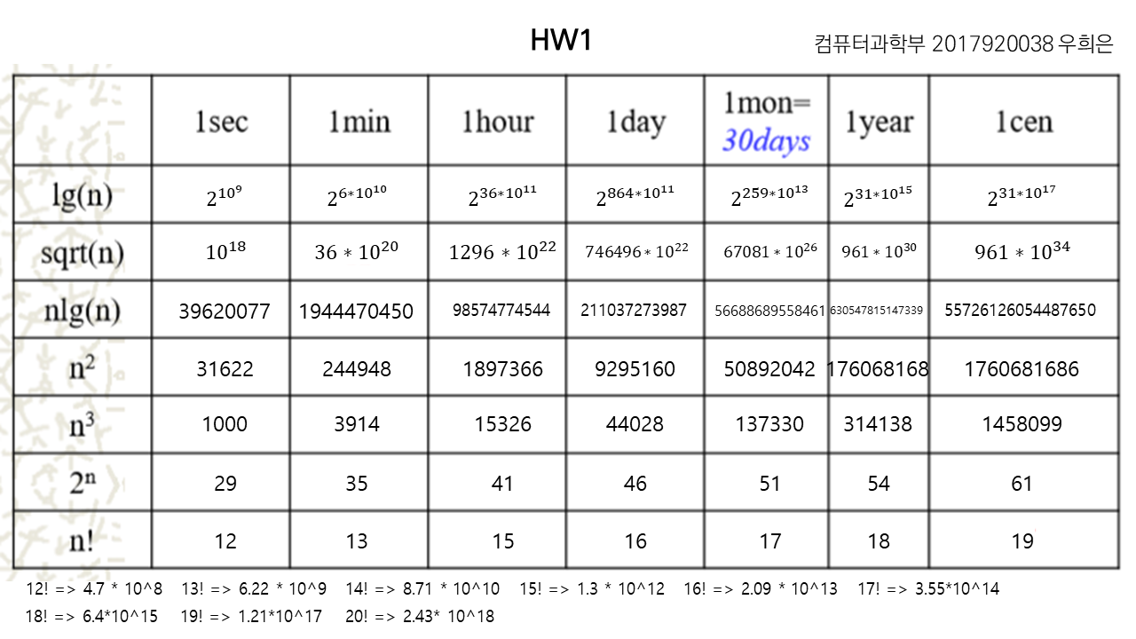 μκ° λ³΅μ‘λκ° f(n)μΈ μκ³ λ¦¬μ¦μ μμμκ°μ΄ 1 nanosecond == 10^(-9) second μ΄λΌκ³ ν λ,
