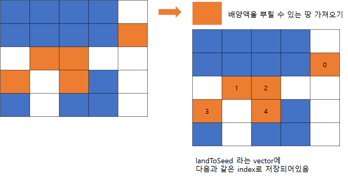 garden map์ ์ ์ฅํ๋ฉด์ ๋์์ ๋ฐฐ์์ก์ ๋ฟ๋ฆด ์ ์๋ ๋ ์ landToSeed๋ผ๋ vector์ ์ ์ฅ