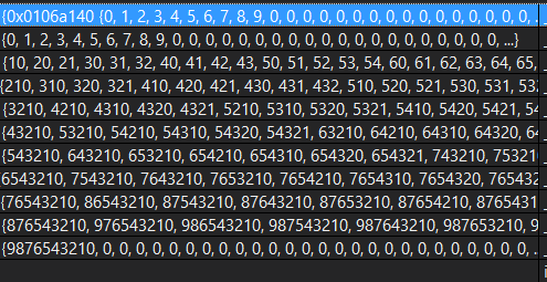 arr๋ ๋ค์๊ณผ ๊ฐ์ด ์ฑ์์ง๋ค. ๋ง์ง๋ง 10์๋ฆฌ ์ ๊ฐ์ํ๋ ์๋ 9876543210 ํ๋์ด๊ณ ๊ทธ ์ดํ๋ ์กด์ฌํ์ง ์๋๋ค. ๊ทธ๋ฆฌ๊ณ ๊ตฌํํด๋ณธ ๊ฒฐ๊ณผ 1022๋ฒ์งธ ์๊ฐ 9876543210์ด๊ณ 1023๋ถํฐ๋ -1์ด ๋์์ผํ๋ค.