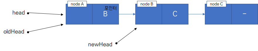 ๋จผ์ ์ด๋ ๊ฒ node A, B, C๊ฐ ์กด์ฌํ๊ณ A->B->C ์์ผ๋ก ์ด์ด์ ธ์๋ LinkedList๊ฐ ์๋ค๊ณ ๊ฐ์ ํ์. ์ด ๋, pop ์ฐ์ฐ์ ์ํํ์ฌ node A๋ฅผ ์ ๊ฑฐํ๋ ค๊ณ ํ๋ค.