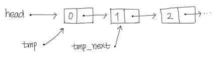 head๊ฐ ๊ฐ๋ฆฌํค๋ ์ฐ๊ฒฐ๋ฆฌ์คํธ๊ฐ ๋ค์๊ณผ ๊ฐ์ด ๊ตฌ์ฑ๋์ด์๊ณ , ์ฝ๋์ ๋ฐ๋ผ tmp๊ฐ head๋ฅผ loadํ๊ณ tmp_next๋ tmp๊ฐ ๊ฐ๋ฆฌํค๋ ๋ ธ๋์ next_node๋ฅผ ๊ฐ๋ฆฌํจ๋ค๊ณ ํ์. ์์ ๊ทธ๋ฆผ๊น์ง ์ฝ๋๋ ์งํ๋์๊ณ , ์ด ๋ ๋ค๋ฅธ thread๊ฐ ์ ๊ทผํ์ฌ headlist์ ๋ํ pop => pop => push(0) ์ฐ์ฐ์ ์ํํ์๋ค.